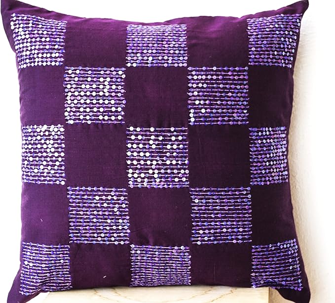 Purple Gold Throw Pillow Cover, Sequin Pillow, Gold Bead Pillow,Decorative pillow