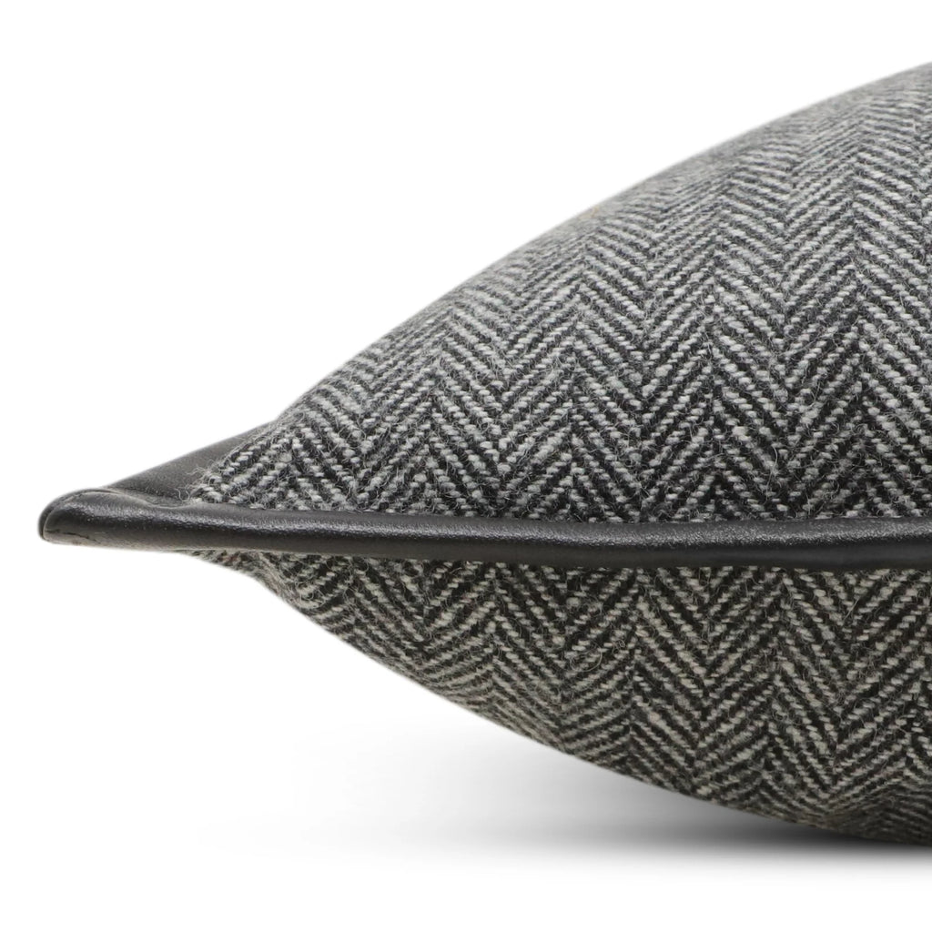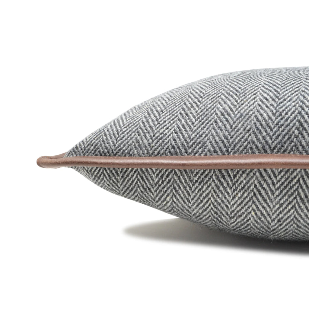 Made from high-quality herringbone wool, this pillow cover offers a soft, durable texture that brings warmth and sophistication to any space. The hand-stitched leather edging adds a luxurious accent, perfect for modern, contemporary, or country-inspired interiors.