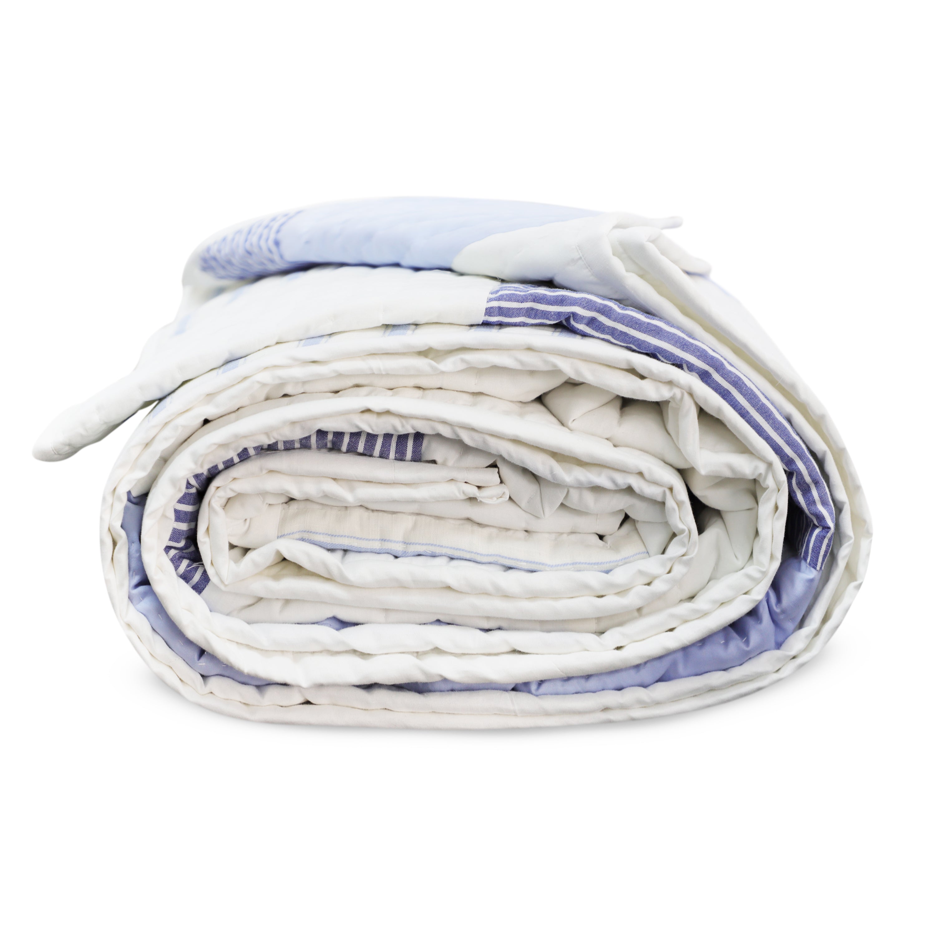 Crafted with pure cotton fabric and stuffed with soft polyester fiber, our quilt showcases an exquisite blend of diverse striped patterns. These stripes come together harmoniously in a mosaic of seamlessly transitioning shades. Designed to provide a gentle and airy warmth, this bedding is ideal for layering throughout the year. Its versatile appearance can effortlessly transition from a clean and timeless aesthetic to a relaxed and coastal vibe, merely by swapping sheets or adjusting room décor.