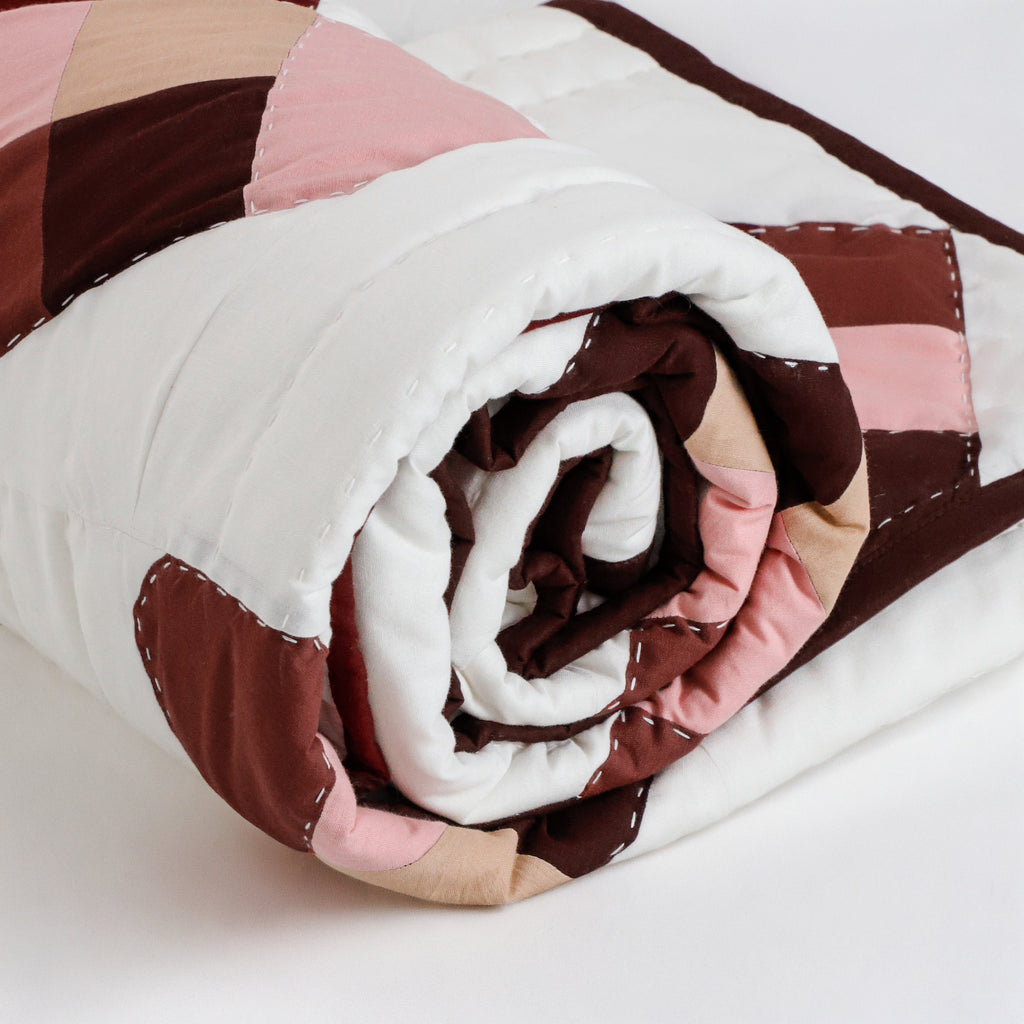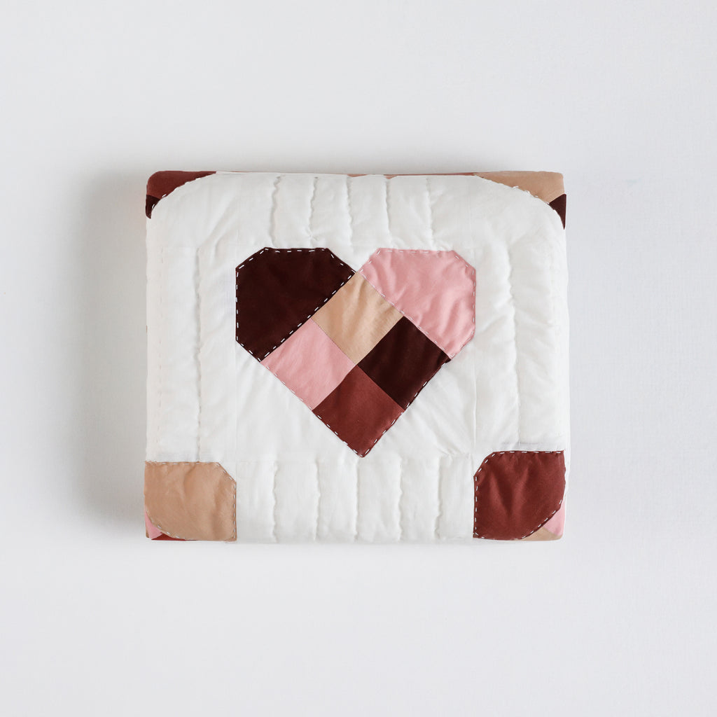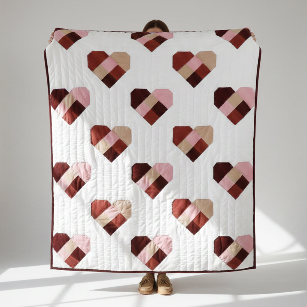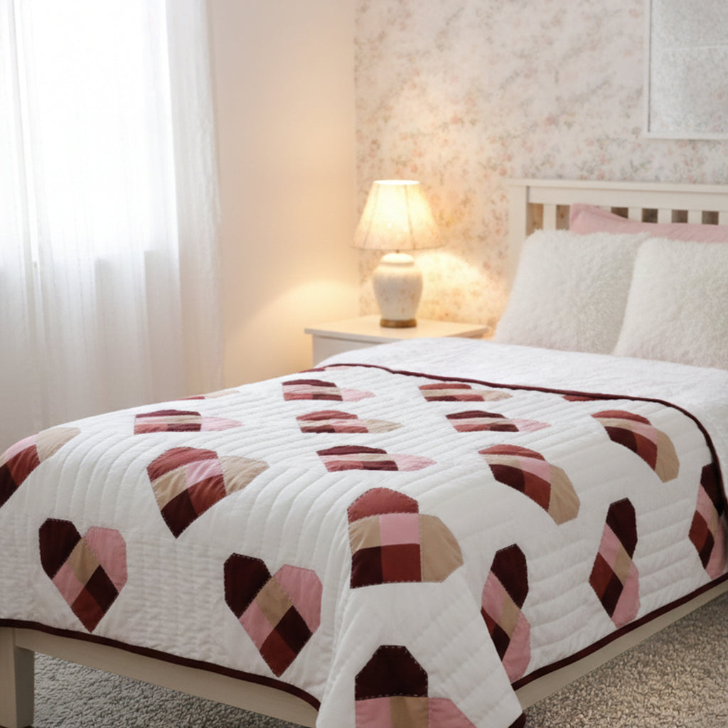 Handmade Cotton Heart Patch Quilt | Cozy Valentine’s Quilt