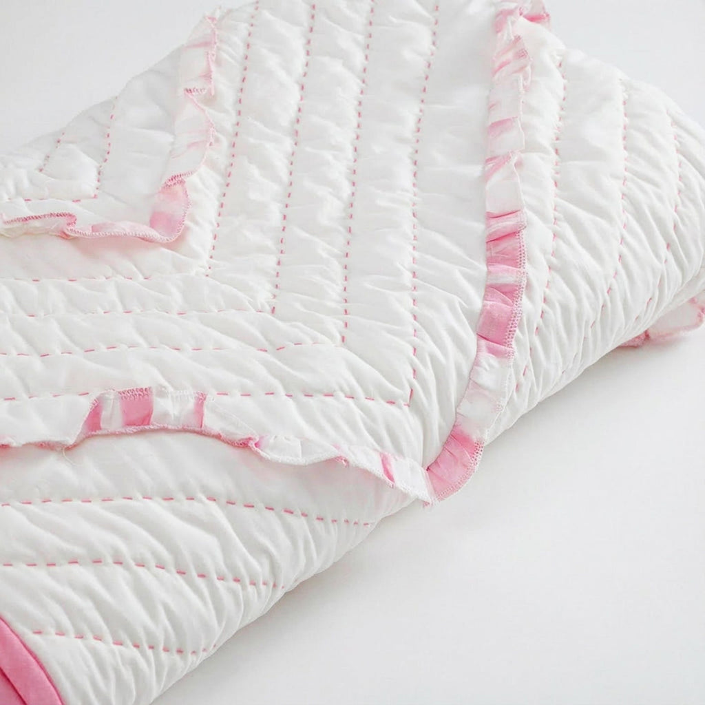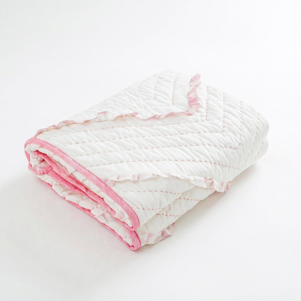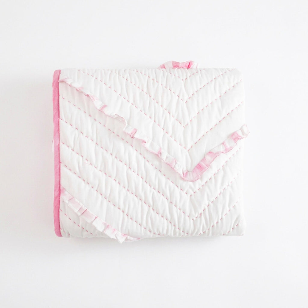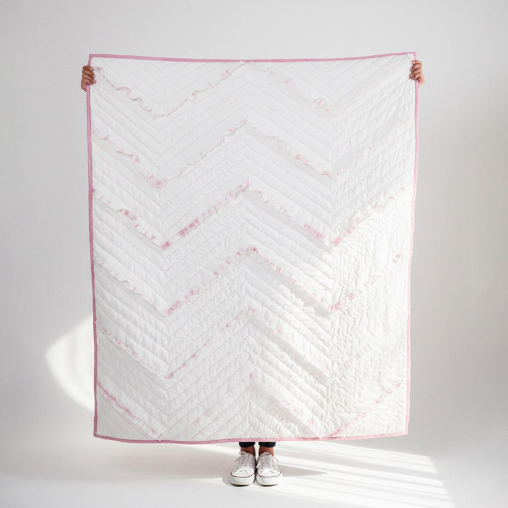 Pink White Chevron Ruffle Quilt