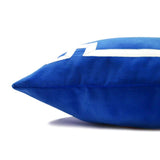 Royal blue heavy cotton velvet is accented with, in this case, white Greek key trim on the pillow front. This decorative pillow is crafted from 100% cotton velvet featuring hand-stitched trim in a Greek Key pattern. Soft velvet and cotton trim adds a luxurious texture element to this Old Hollywood-inspired pattern.